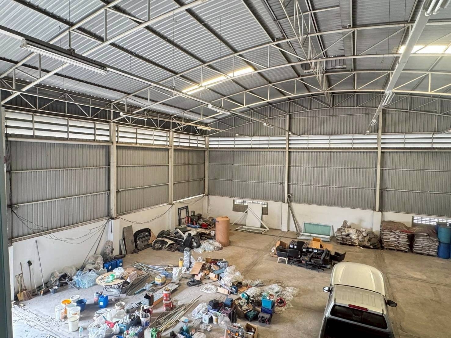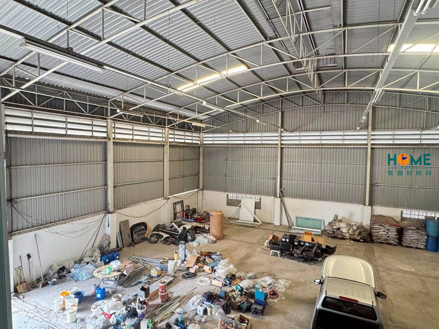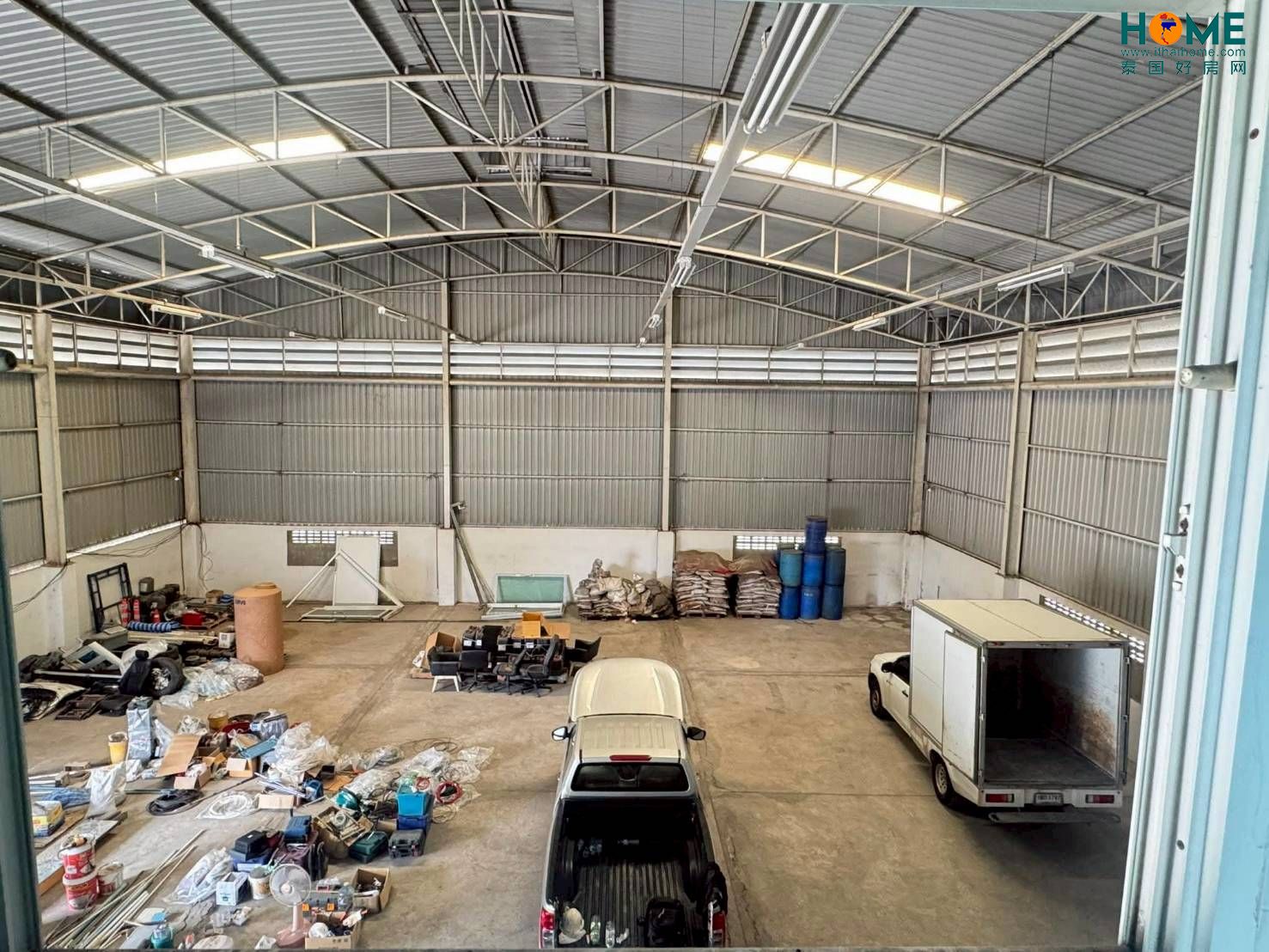 仓库建筑面积800平方米围墙面积160平方米仓库内设有单层夹层办公室 1 间停车场、回车区及车辆出入口面积 123平方米配备钢筋混凝土排水管仓库后方设有卫生间,面积 4平方米地面承重可达 4 吨/平方米已接通电力水电费用按政府账单实报实销适合家具生产、小型工业作业、