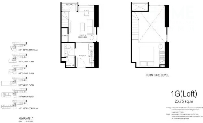 1卧室(阁楼),地契面积23.75–28.75平方米,总使用面积32.75–41.00 平方米,起价329万泰铢