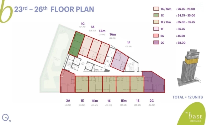2卧室,面积48.25平方米,起价480万泰铢