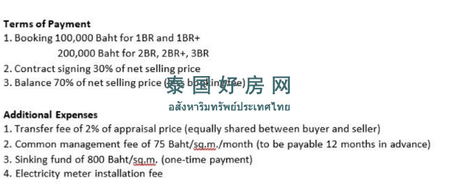 维修基金为每平方米 800 泰铢(一次性缴纳)