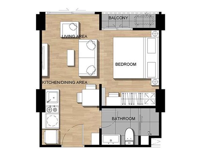 房间类型:- 1卧室:29.30-37.00平方米