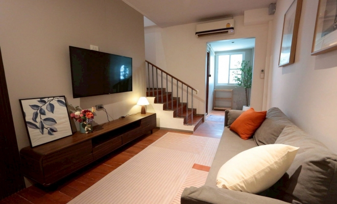 【曼谷-空堤区 】空堤区 | Townhouse — Thonglor轻轨站附近 联排别墅出租 2卧 200平米 60,000泰铢/月(可养宠物)