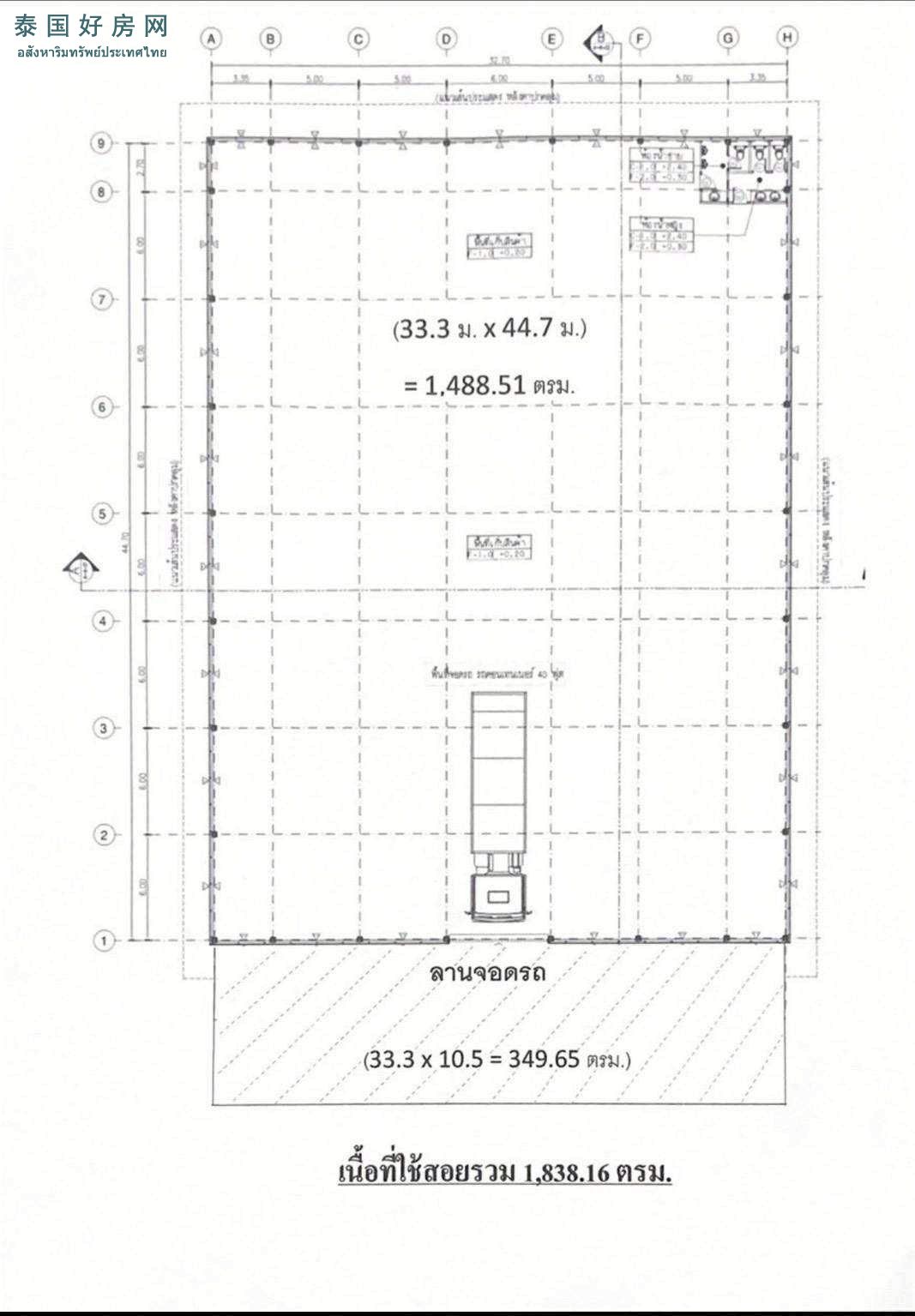 1 仓库内部面积 1,488.51 平方米2 仓库前方停车场面积 349.65 平方米3 总使用面积 1,838.16 平方米4 电费按照电力局实际账单计算5 水费每单位 18 泰铢