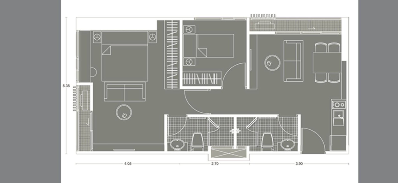 2卧2卫,53平米