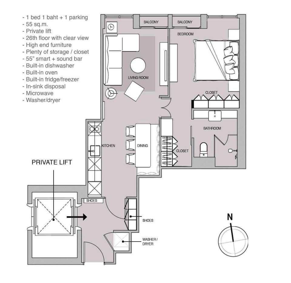 出租:55,000泰铢/月,押二付一,一年合同