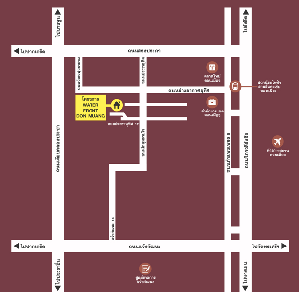 此外,小区步行十分钟即可到达距离廊曼机场轻轨站。该轻轨南站与曼谷地铁环线无缝对接,一小时内可以通达曼谷任意商业区、旅游区和居民区,交通便利度前所未有。